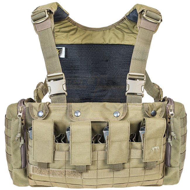 Le support dorsal Tasmanian Tiger Trooper en couleur Coyote est une extension pour le TT Chest Rig, permettant une fixation facile de plaques de protection dorsale et d'équipements supplémentaires. Il est compatible MOLLE et conçu pour fonctionner de mani