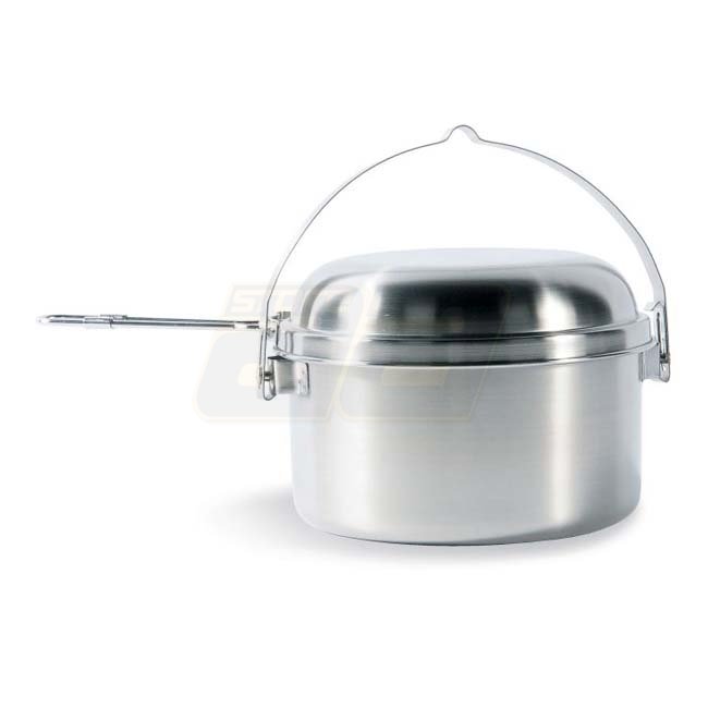 La bouilloire se compose d'une casserole et d'une casserole, qui peuvent être utilisées en même temps comme couvercle de casserole ou comme assiette. Le pot contient une échelle de volume pratique. Cela en fait un ensemble complet polyvalent et léger avec une petite taille d'emballage.