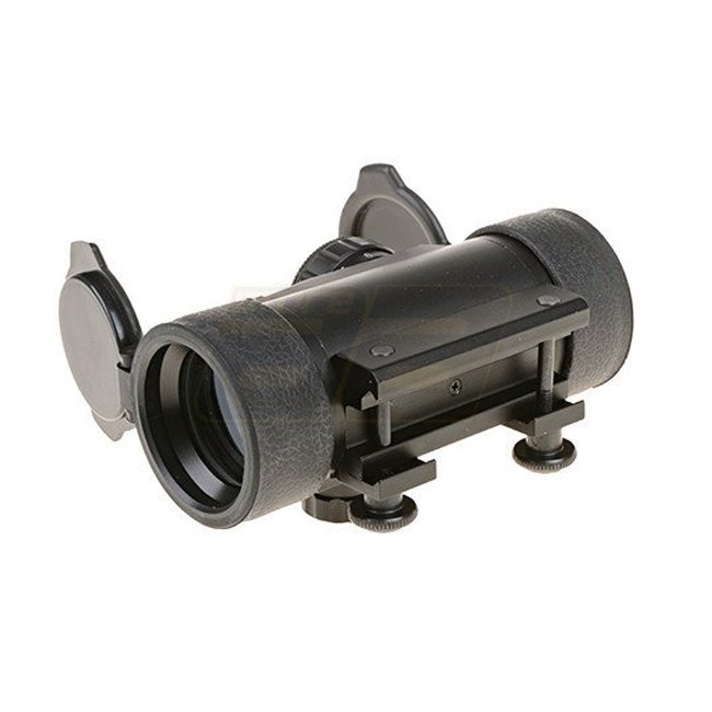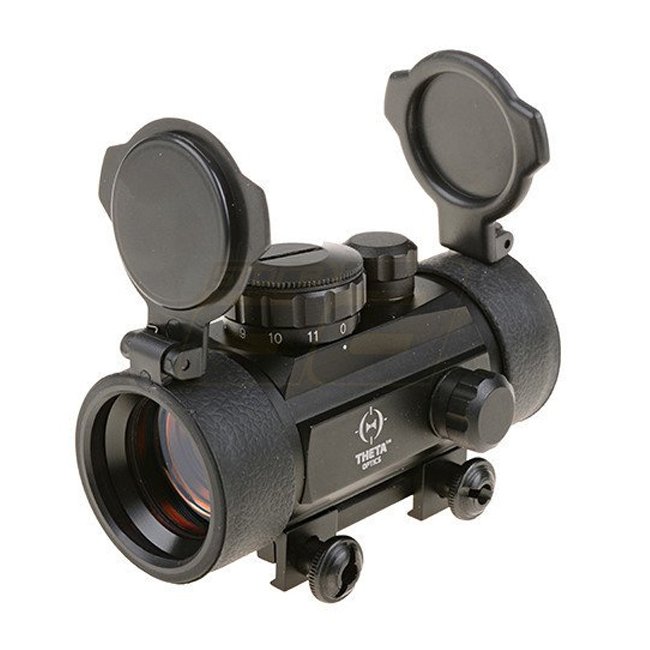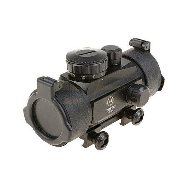 Theta Optics 1x30 viseur point rouge - Noir, 1x de grossissement, lentille de 30 mm, illumination rouge, réticule à point ajustable en dérive et en élévation, batterie CR2032 1x, montage Picatinny de 20 mm, longueur de 100 mm.