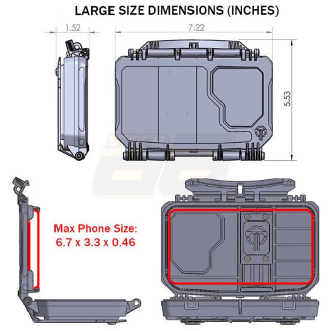 Alors que le DarkVault® Thyrms d'origine reste un étui à usage général pour les équipements sensibles, le DarkVault 2.0 Critical Gear Case est spécialement conçu pour une utilisation sur smartphone dans des environnements difficiles. Fixez simplement le DarkVault 2.0 à votre support de plaque ou à votre plate-forme de poitrine pour un accès facile et rapide à votre appareil à des fins de navigation, d'informations balistiques, de communications ou à d'autres fins. Thyrm a également conçu le DarkVault 2.0 et la fenêtre de visualisation afin qu'il fonctionne avec la plupart des smartphones du marché dotés d'étuis de téléphone portable normaux.