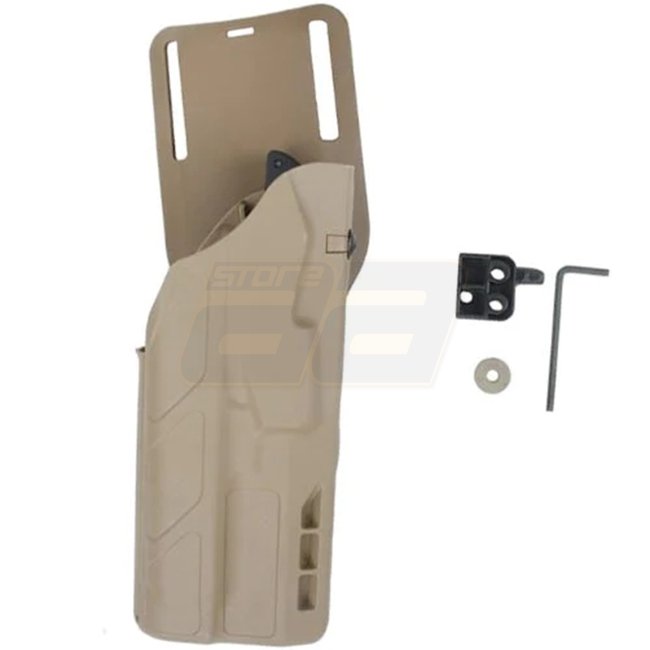 Un holster Coyote de haute qualité conçu pour s'adapter aux pistolets TMC 378 ALS Glock 17 / 19 avec des lampes tactiques TLR1, X300 ou X300U. Durable, robuste et parfait pour les opérations tactiques.