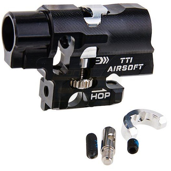 TTI Marui Hi-Capa Precision Hop-Up Chamber - Noir : construction en aluminium CNC, style TDC, pour la série Tokyo Marui Hi-Capa. Léger mais durable pour des réglages précis de hop-up.