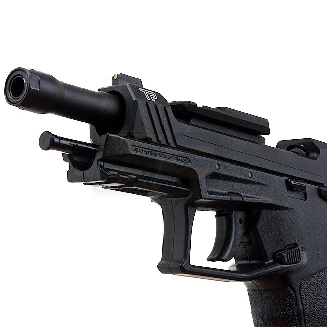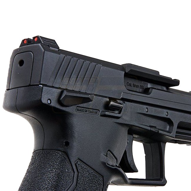 Extérieurement, le pistolet comporte un canon fileté CCW de 14 mm pour toutes les pièces jointes de bouche telles que les traceurs et les suppresseurs, une plaque optique RMR pour les solutions de points rouges et Picatinny sous les rails pour différents accessoires tels qu'une lampe de poche ou un laser, tout cela rend ce pistolet tout à fait modulaire. Disons qu'avoir un point rouge sur votre pistolet Airsoft n'est pas votre truc, ce pistolet a aussi des viseurs en fer à fibre optique.