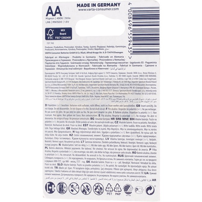 Varta AA Longlife Power 4pcs - Piles fiables et durables pour vos appareils de tous les jours. Paquet de 4 piles AA. Faites confiance à Varta pour tous vos besoins en énergie.