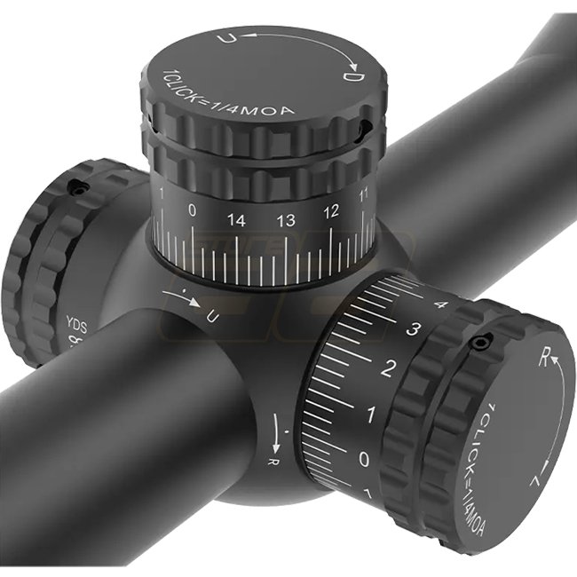 - Tourelles: 1/4 MOA par clic, ±50 MOA, remise à zéro verrouillable