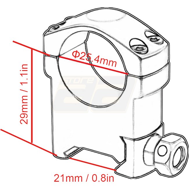 Vector Optics Anneaux de profil haut 25.4mm - Hauteur : 29mm, Diamètre : 25.4mm, Matériau : Aluminium 6061-T6, Poids : 125g