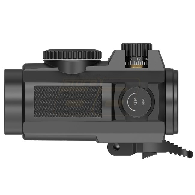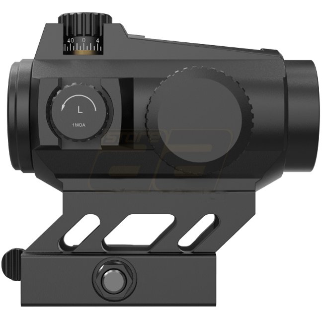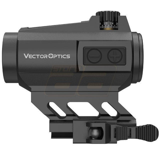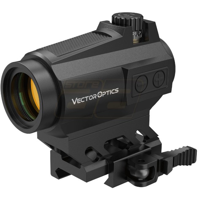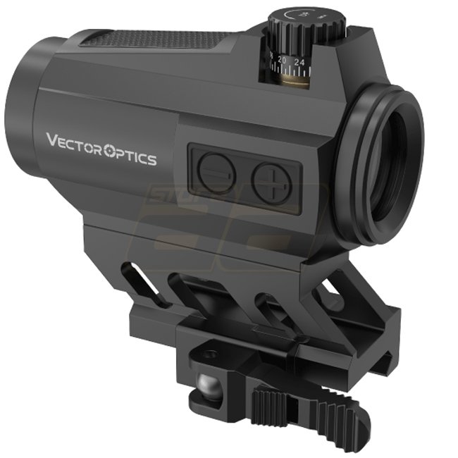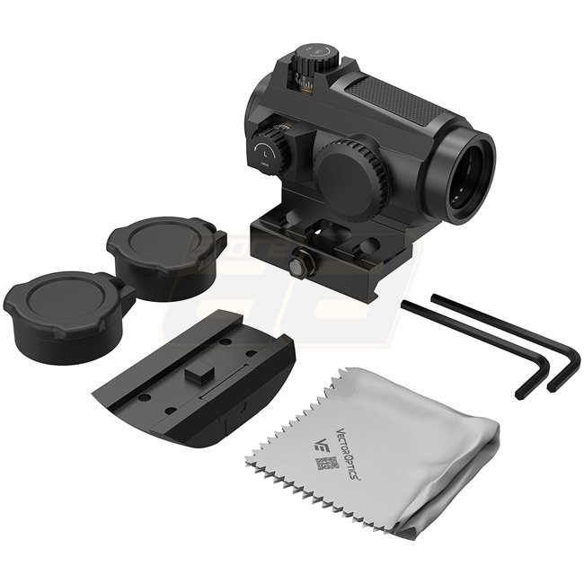 Visée point rouge compacte et légère de Vector Optics. Caractéristiques : grossissement 1x, objectif de 22 mm, dégagement oculaire illimité, réticule à point rouge de 2 MOA, 7 niveaux de luminosité diurne et 1 niveau vision nocturne, graduation d'ajusteme