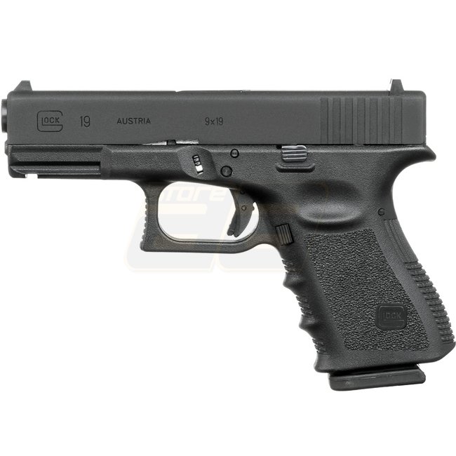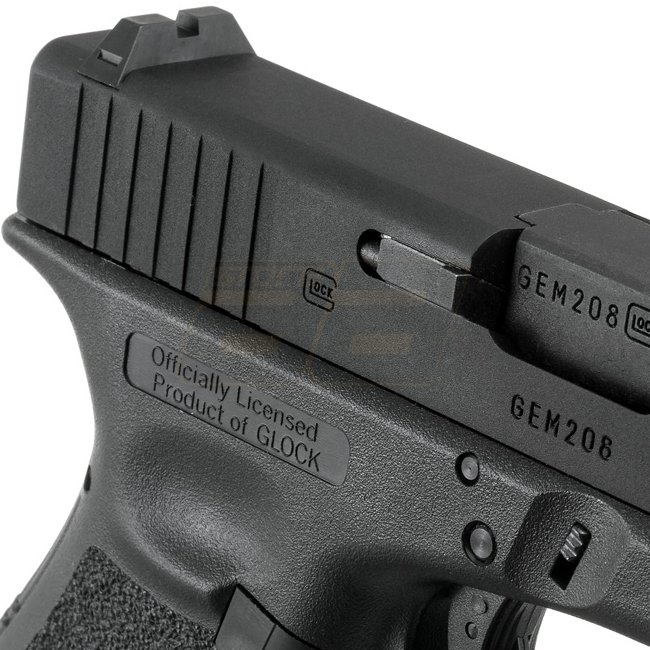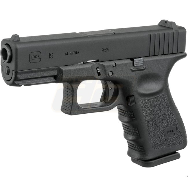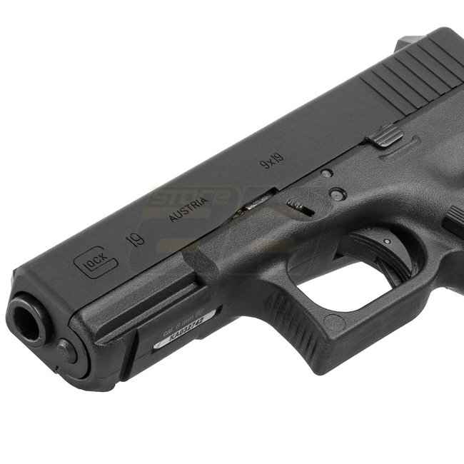 Pistolet VFC Glock 19 Gen 3 à gaz à recul - Diaphragme en métal, poignée en plastique, capacité de 20 cartouches, longueur de 175 mm, poids de 620 g, canon interne de 85 mm, vitesse de bouche de 310-330 FPS, mode semi-automatique, portée de tir de 42,53 à