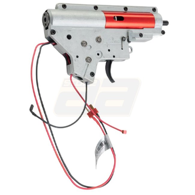 Complete gearbox set par VFC, conçu pour les plateformes VFC AR15/M4 AEG et compatible avec d'autres modèles AR/M4 en version 2. Ce kit inclut une gearbox Version 2 complète avec MOSFET Gate Aster inline, détente optique, modes de tir programmables, frein actif, pré‑armement et système de ressort rapide. Comprend ressort M120 et connexion Deans (T‑Plug) standard. Installation plug-in ; peut nécessiter de légères modifications sur modèles non-VFC. Poids env. 610 g.