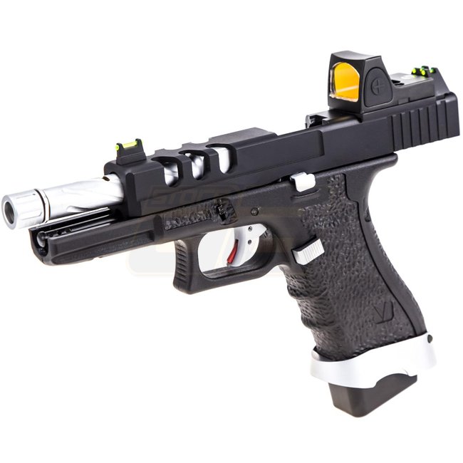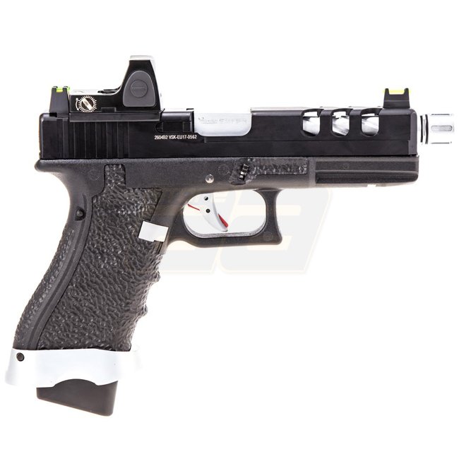 Pistolet à chaîne Vorsk EU17 Vented & BDS à gaz à recul - Noir. Métal / Polymère, chargeur de 21 coups, longueur de 220 mm, poids de 790 g, canon intérieur de 90 mm, 320-340 FPS, mode de tir semi-automatique, hop-up réglable. Comprend pistolet, chargeur,
