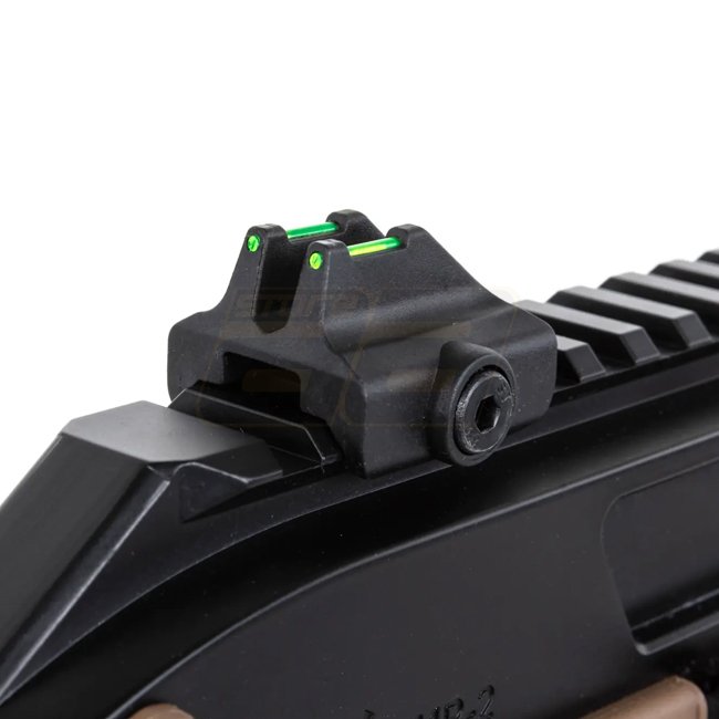 • Montage d'accessoires: Rail plat de 20mm équipé de viseurs en fibre avant et arrière, permettant l'ajout d'optiques et d'accessoires sur le garde-main