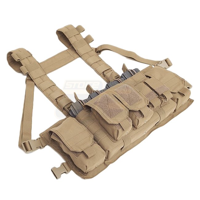 Le Warrior Assault Systems Falcon Chest Rig (FCR) est conçu pour fonctionner comme un gilet tactique compact et polyvalent, idéal pour une configuration autonome. Il peut accueillir 8 chargeurs de type M4 avec une rétention élastique réglable, ce qui permet un échange facile entre les chargeurs M4 et AK. Le gilet dispose également de 4 poches utilitaires, dont les poches de bout peuvent contenir des radios MBITR 148. Des boucles élastiques sur les côtés des poches permettent de ranger des chem-lights, des petites torches et d'autres accessoires. De plus, la pochette de pistolet double DPDA-9 de Warrior est fixée à l'avant du gilet via MOLLE et peut être retirée ou remplacée selon les besoins. Le design unique du FCR permet de le fixer facilement au RPC (Recon Carrier) de Warrior en retirant les sangles d'épaule et de dos et en alignant les clips restants avec les clips ITW correspondants situés à l'avant et sur les côtés du RPC, créant ainsi une plateforme évolutive. Fabriqué à partir de tissus de haute qualité, le FCR offre durabilité et fonctionnalité dans des environnements exigeants.