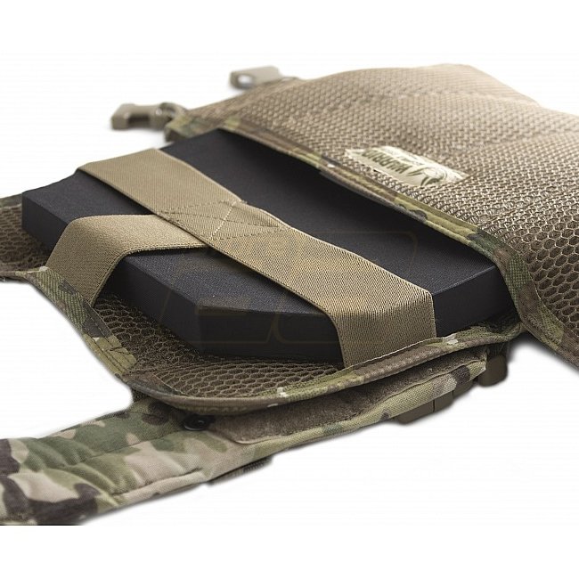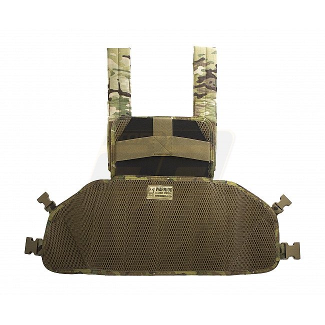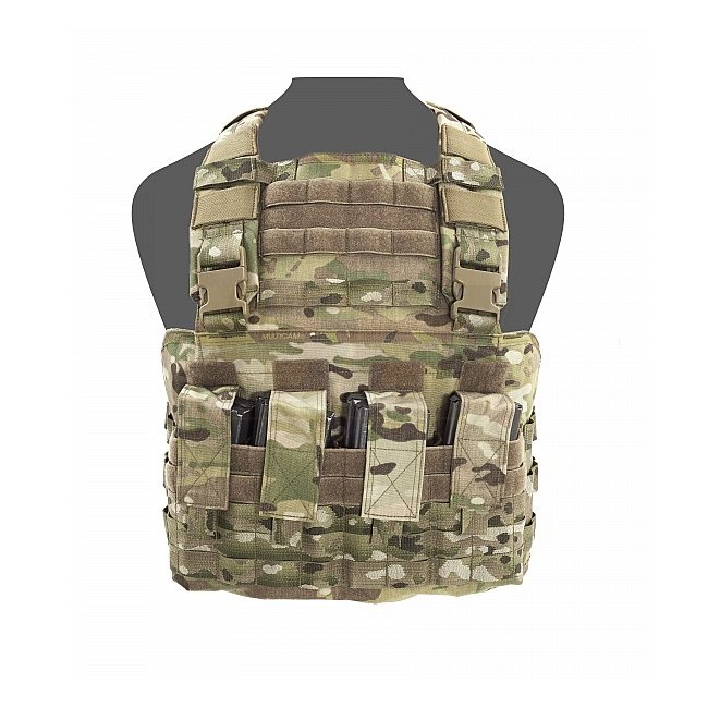 Gilet de combat Gladiator Warrior - Multicam : Plateforme versatile et entièrement ajustable compatible avec des plaques de protection balistique de 10x12 pouces. Comporte 4 poches pour chargeurs, des sangles ajustables, un espaceur en maille 3D pour le c