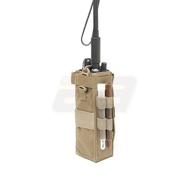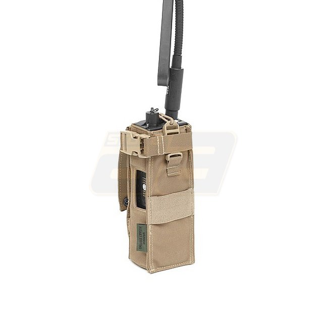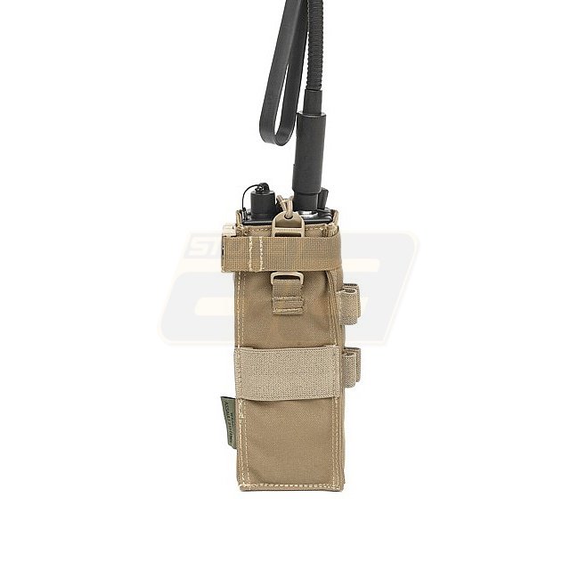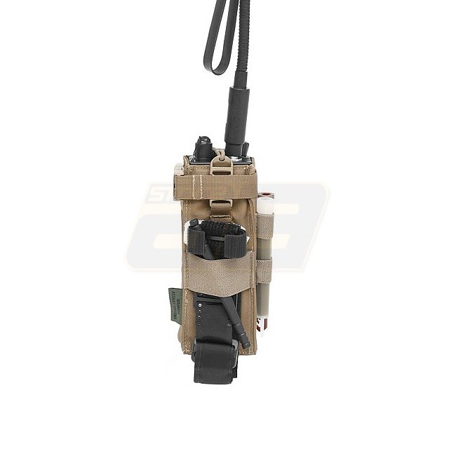 Warrior MBITR Radio Gen 2 - Coyote est une pochette polyvalente compatible avec les radios PRC-148. Elle permet un accès facile aux commandes de la radio, offre un espace de rangement pour C.A.T., des bâtons lumineux et des cartouches de fusil à pompe.