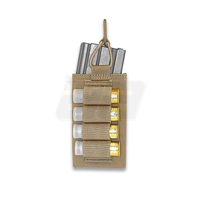 La pochette Warrior Single Open 5,56mm est dotée d'une rétention élastique permettant des changements de chargeurs rapides et fluides. Son design discret comprend un espace pour quatre cartouches de fusil de chasse Hatton 12-gauge ou des cartouches de marquage CS. Le compartiment principal est doublé d'un matériau antidérapant Posigrip pour un maintien optimal du chargeur.