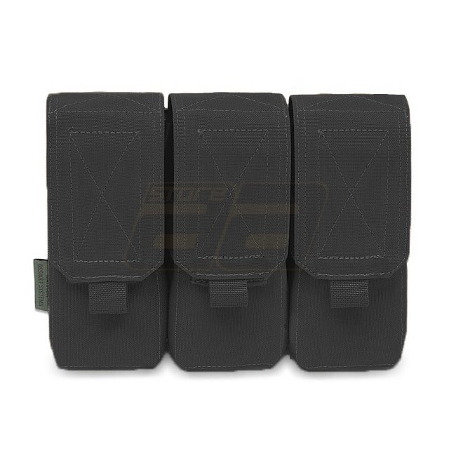 Poche triple de magazines M4 Warrior compatible MOLLE en Noir. Peut contenir jusqu'à 6 magazines M4, offrant des options d'utilisation polyvalentes.