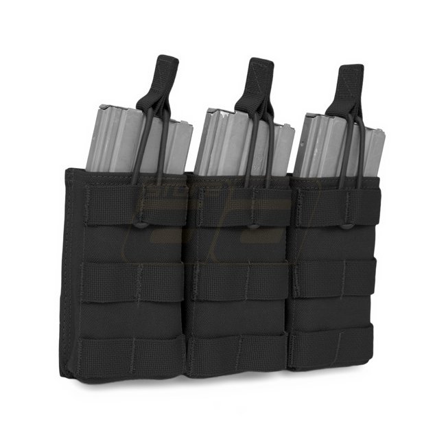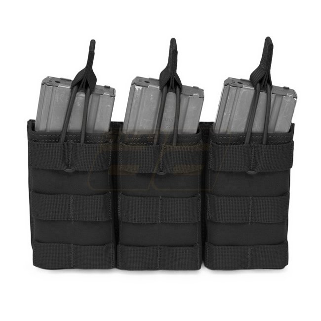 Gardez vos chargeurs M4 sécurisés avec la pochette ouverte Triple M4 de Warrior en noir. Cette pochette compatible MOLLE peut contenir 3 chargeurs M4 facilement.