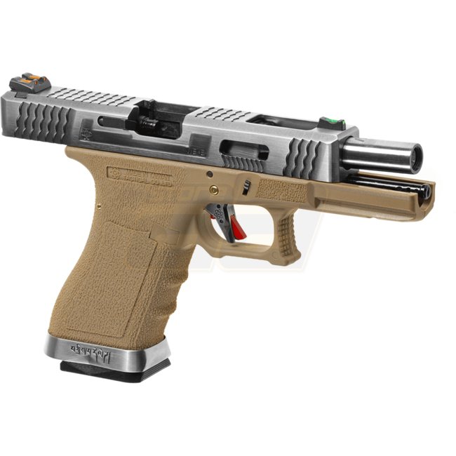 WE G-Force 18C SV Silver Barrel Gas Blow Back Pistol - Desert