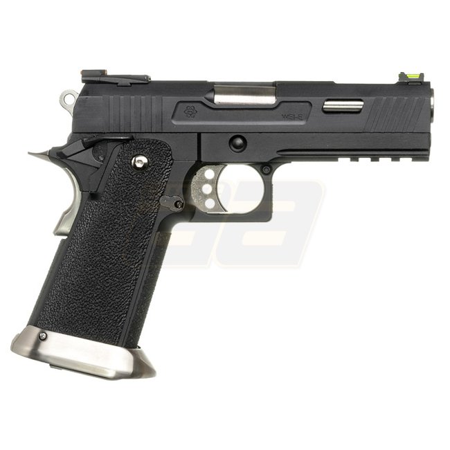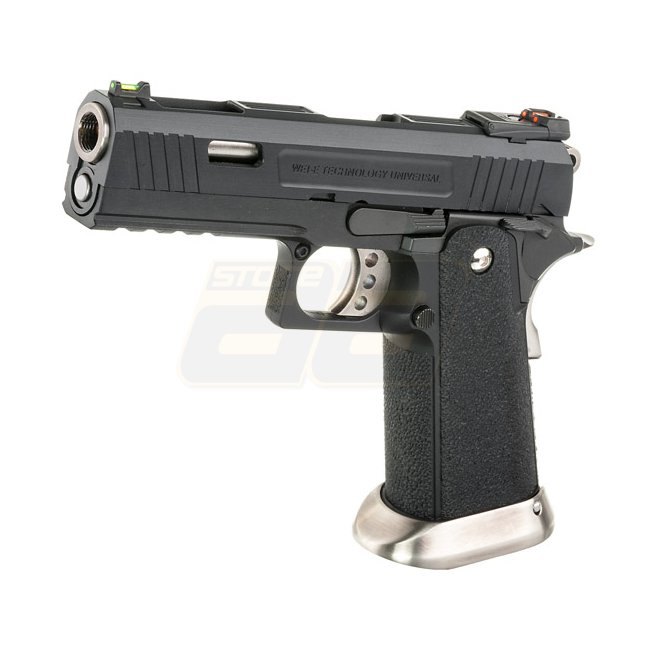 Pistolet à gaz blowback WE Hi-Capa 4.3 Allosaurus - Noir, glissière en métal, poignée en plastique, capacité du chargeur de 31 coups, longueur de 202 mm, poids de 990 g, canon interne de 97 mm, vitesse à la bouche de 290-310 FPS, mode de tir semi-automati