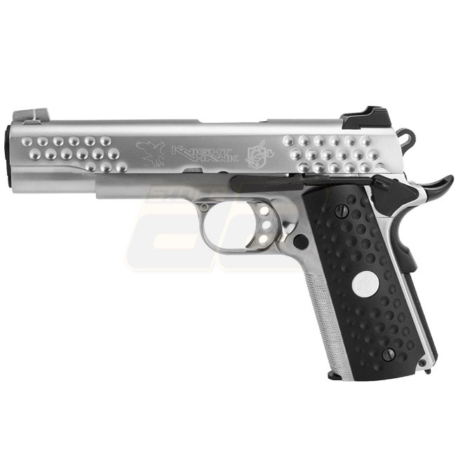 Avec une vitesse en sortie de bouche d'environ 310 fps (0.90 joule), le Knight Hawk est parfaitement adapté pour une utilisation en jeu. Le hop-up réglable permet d'ajuster précisément la trajectoire des billes. Le pistolet est livré avec un chargeur de 15 coups et fonctionne avec du gaz standard green gas.
