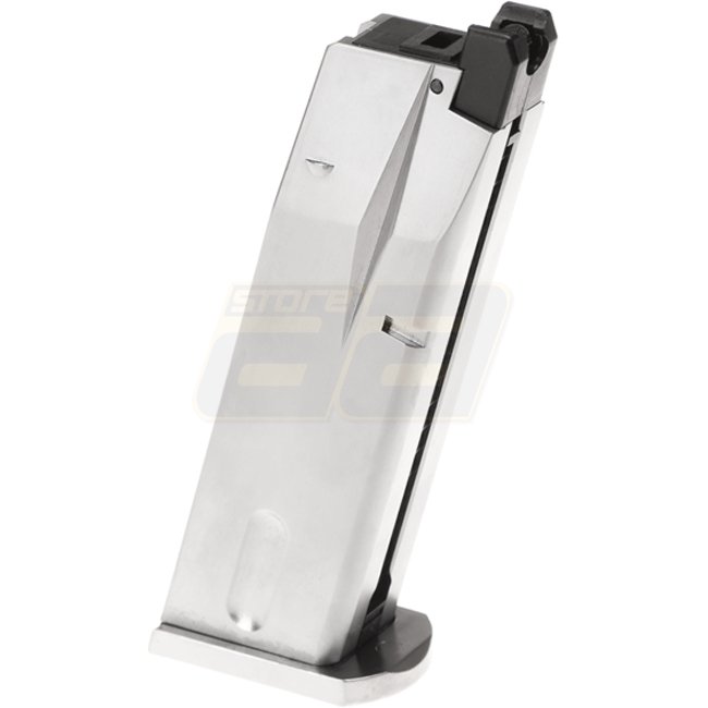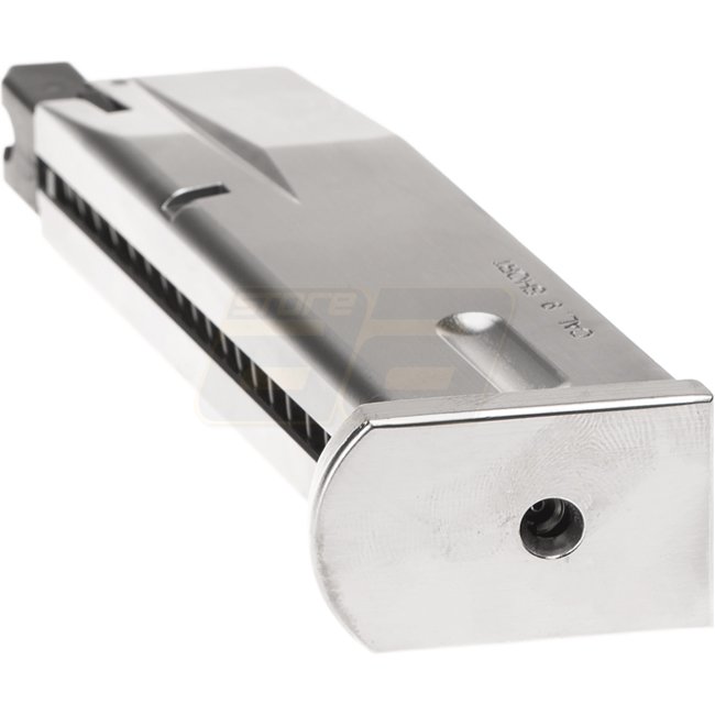 Un chargeur de gaz de haute qualité compatible avec le pistolet airsoft WE M84. Capacité de 25 coups. Construction durable avec une finition argentée élégante.