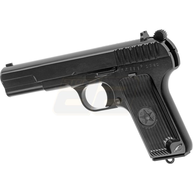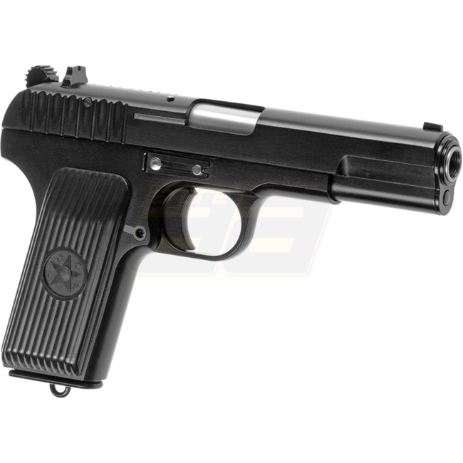 Pistolet à gaz WE TT-33 compact et fiable avec une finition noire élégante. Construction en métal et en polymère, capacité du chargeur de 14 balles. Mode de tir semi-automatique, hop-up réglable. Idéal pour les passionnés d'Airsoft.
