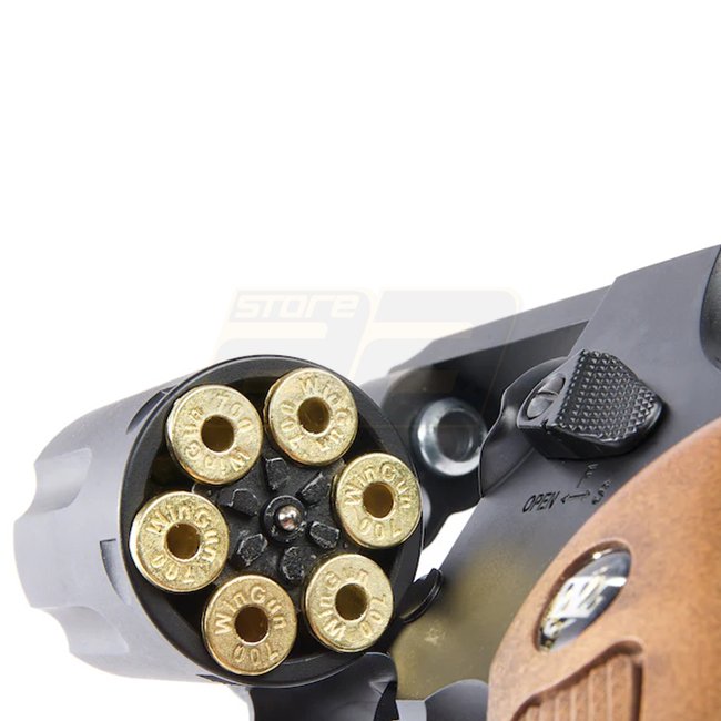 WinGun Revolver Co2 733 2 pouces Poignée Brune - Noir. Poignée en métal/plastique, 380-400 FPS, Semi-Auto, Portée de tir : 52,13-54,88 m, 6x Douilles incluses.