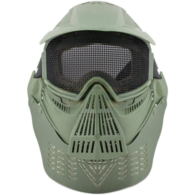 WoSport Commander Full Face Steel Mesh Mask - Olive
