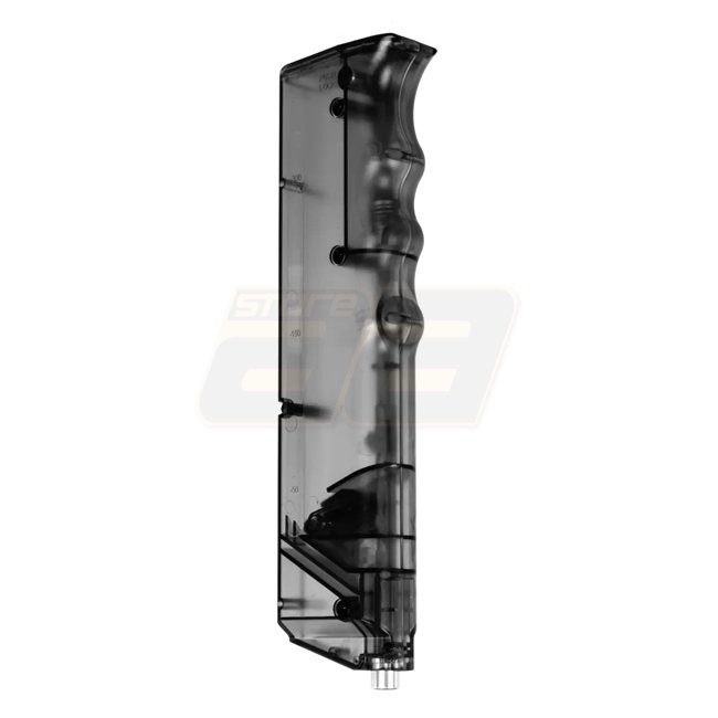 Le chargeur rapide Wosport EX‑0410 est fabriqué en polymère transparent résistant et peut contenir environ 300 billes BB. Il fonctionne de manière fiable avec les chargeurs real‑, low‑ et mid‑cap et inclut plusieurs adaptateurs. Sa forme imite un chargeur PM, ce qui permet un transport facile dans des poches adaptées.