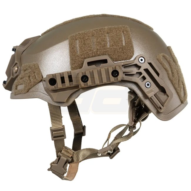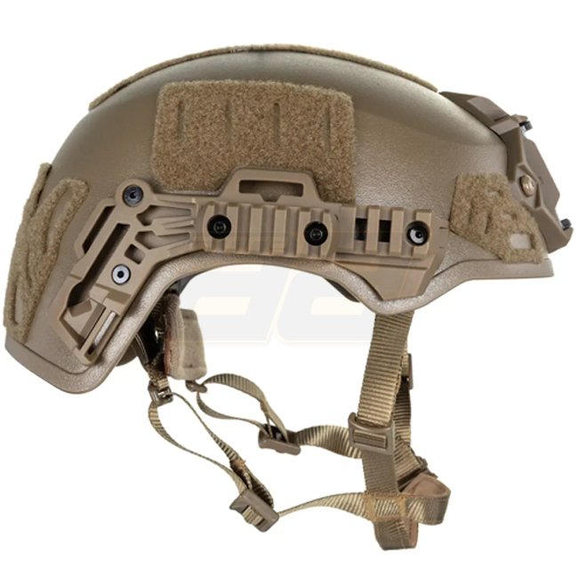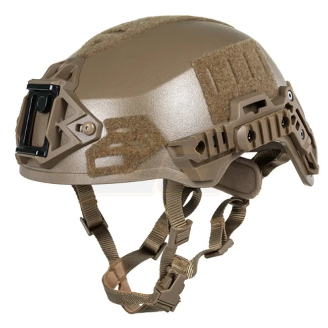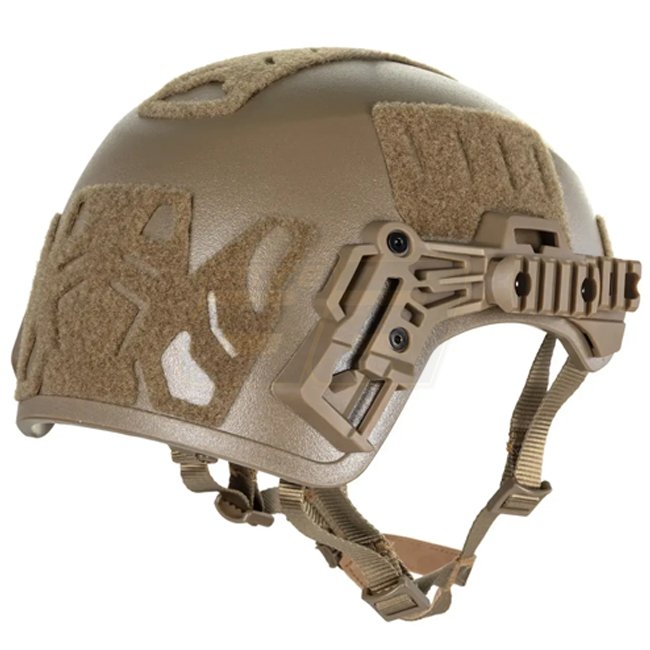 Le casque réplique Wosport EX HL‑103‑E possède une coque durable en ABS‑nylon avec surface rugueuse mate réduisant les reflets. Il est fourni avec 9 coussinets pour un ajustement précis et confortable, fixés par Velcro. Des rails latéraux pour accessoires et une fixation NVG à l’avant sont inclus. La jugulaire 4 points possède une protection mentonnière rembourrée et s’ajuste facilement. Des câbles d’extraction sont également fournis.