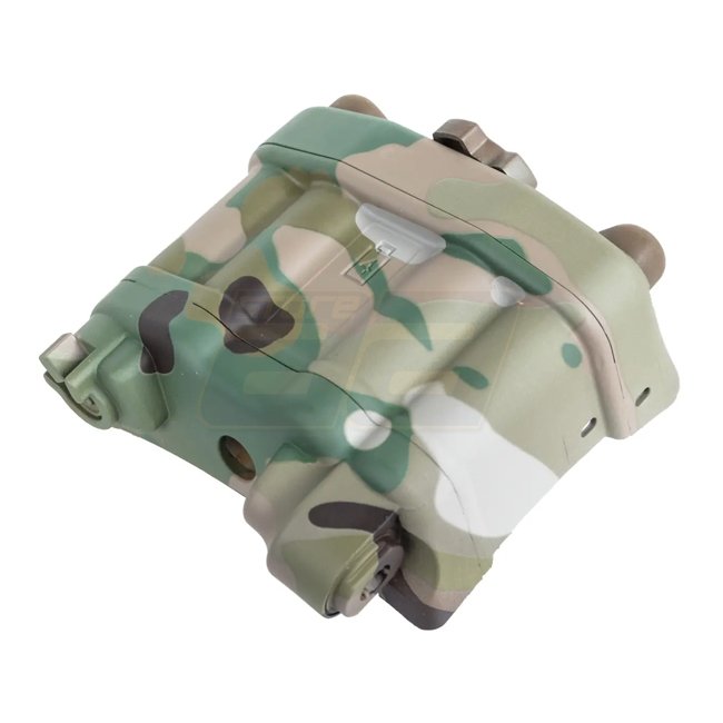 Le boîtier Wosport HL‑ACC‑81 est une réplique décorative en nylon. Il peut accueillir quatre piles AA, mais ne fournit pas de courant. Une sangle velcro fournie permet le montage sur casque ou équipement compatible. Couleur : noir.