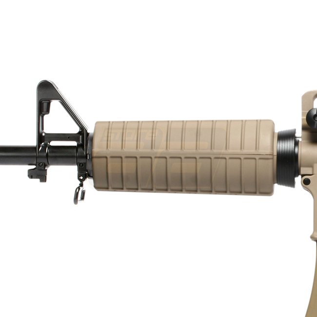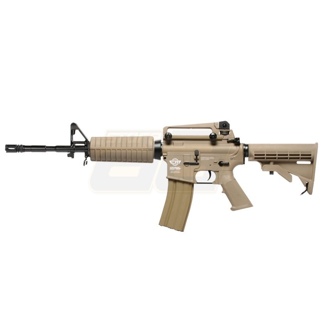 G&G CM16 Carbine 0.5J AEG - Desert. Lightweight AEG rifle with nylon body, metal accessories, and adjustable hop-up. Ideal for both semi-auto and full auto shooting modes. Comes with 450-round magazine.