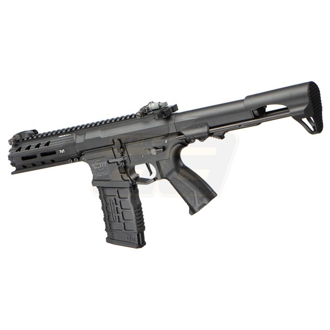 G&G ARP 556 V2S S-AEG in Black color, specially designed for the German market with semi-automatic shooting mode only. Officially approved by the Beschussamt with F in the pentagon. MOSFET equipped, long type motor, 300 rounds magazine capacity, adjustabl