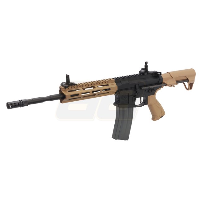 G&G CM16 Raider L 2.0E AEG - Desert, Version 2 gearbox with ETU & MOSFET, ABS plastic / metal materials, 450 round magazine capacity, 750-830mm length, 2600g weight, 357mm inner barrel, 14mm- muzzle thread, 350-370 FPS muzzle velocity, Semi Auto & Full Au