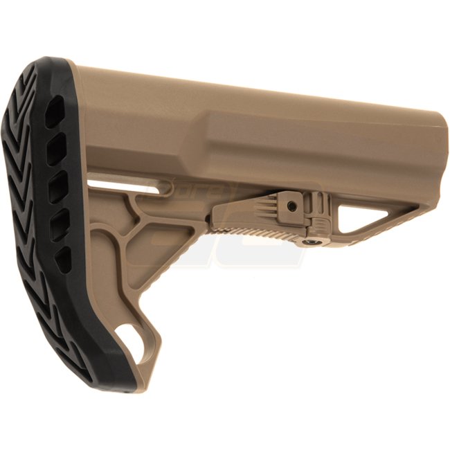 G&G GOS-V4 Stock - Tan: Efficiently adjustable, lightweight, and durable stock designed for enhanced maneuverability during airsoft gameplay.