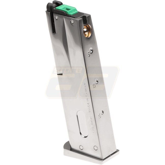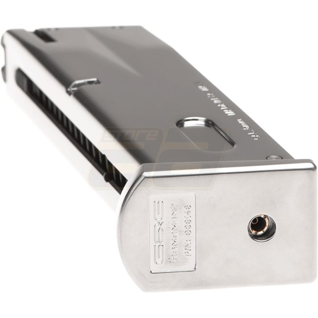 G&G GPM92 27rds Gas Magazine - Silver: High-quality gas magazine for the GPM92 airsoft pistol, holding 27 rounds and featuring a sleek silver design.