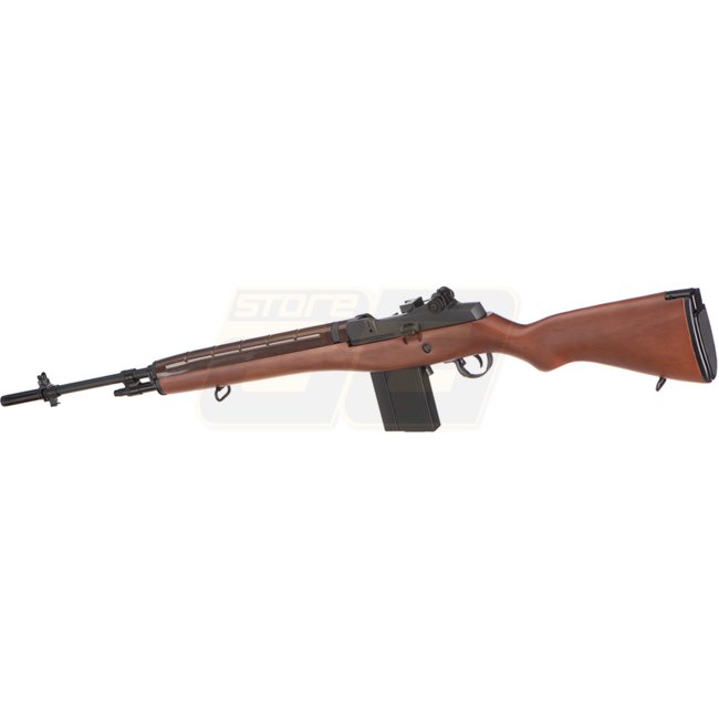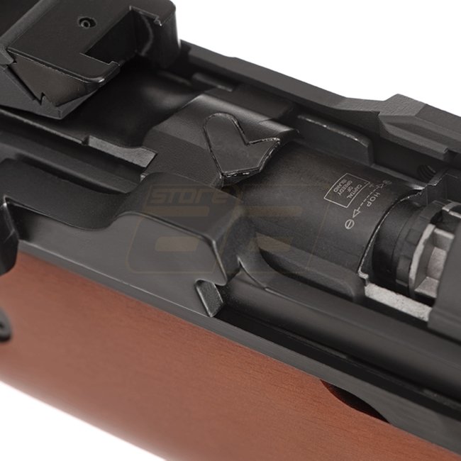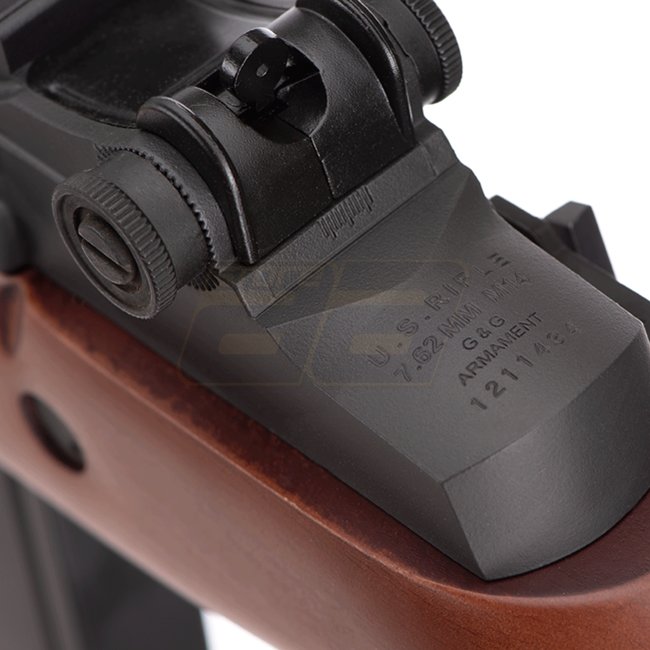 G&G GR14 Veteran ETU AEG - high-quality airsoft rifle with wooden and metal accents, 450-round magazine, shooting range of 49-52 meters, and adjustable hop-up. Semi-auto & full-auto shooting modes with a muzzle velocity of 360-380 FPS. Perfect for both in