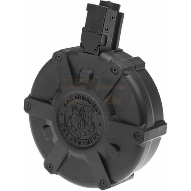 G&G MP5 1500rds Drum Magazine - High-capacity magazine designed for G&G MP5 airsoft guns, holds up to 1500 rounds for extended play without reloading. Durable and reliable, ideal for intense airsoft battles.