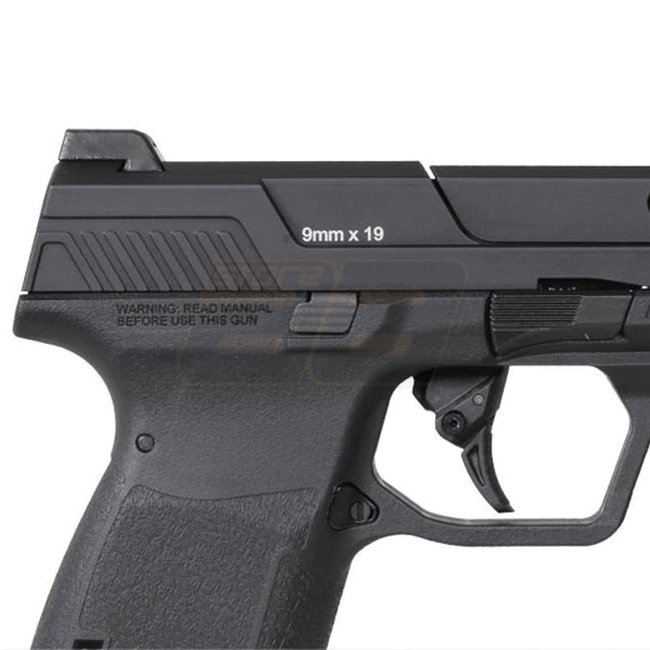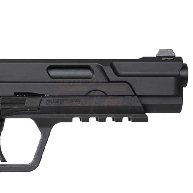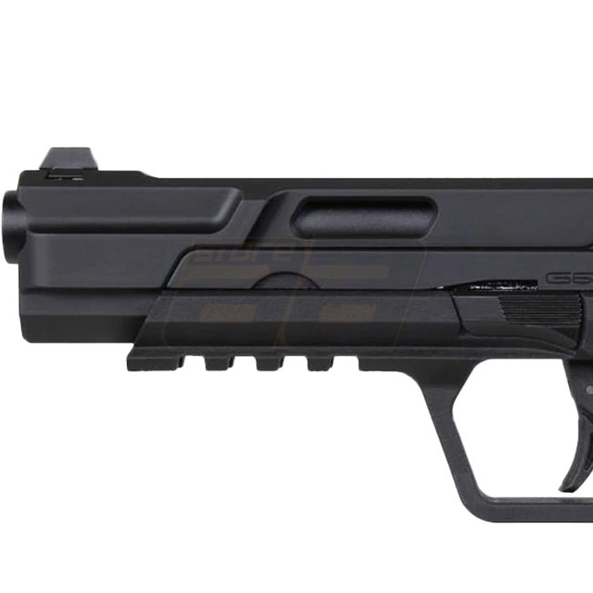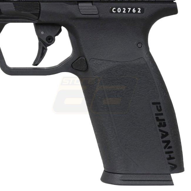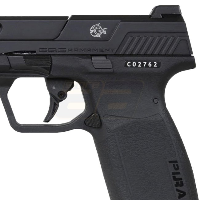 G&G Piranha Mk I Gas Blow Back Pistol - Black, Aluminum / Fiber reinforced polymer, Magazine capacity: 22 (6mm), Length: 198mm, Weight: 670g, Inner barrel length: 102mm, Muzzle velocity: 300-320 FPS / 0.84-0.95 Joule, Shooting mode: Semi Auto, Shooting ra