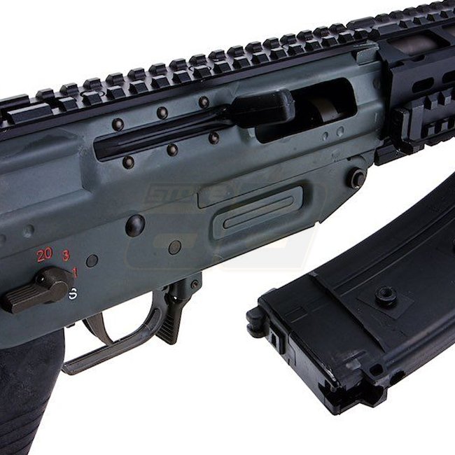 Cerakote GHK 551 Tactical Gas Blow Back Rifle - Grey with metal / polymer construction, 32rd magazine capacity, 483 / 744mm length, 3296g weight, 345mm inner barrel, 14mm- / CCW muzzle thread, shooting mode in Semi Auto & Full Auto, adjustable hop-up. Pac