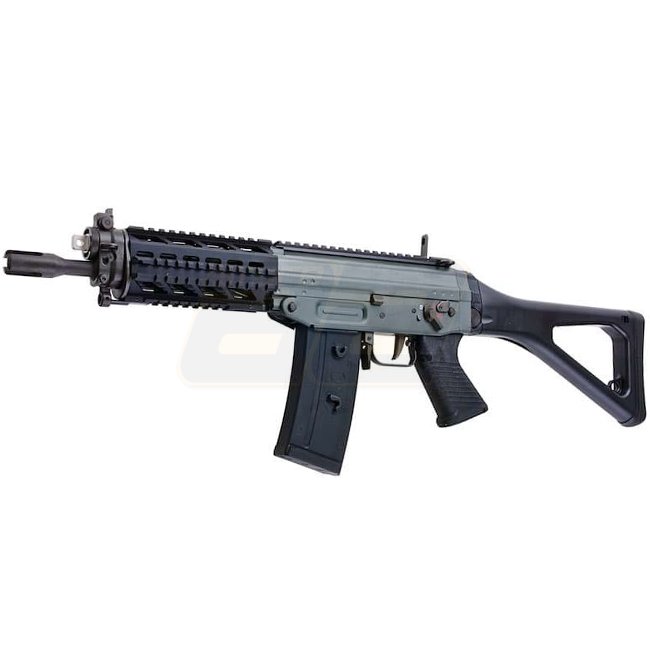 Cerakote version of GHK 553 Tactical Gas Blow Back Rifle in grey color. Metal and polymer construction, 32-round magazine, 483/744mm length, 3296g weight, 245mm inner barrel, 14mm- / CCW muzzle thread, 370-390 FPS velocity, Semi Auto & Full Auto modes, 50