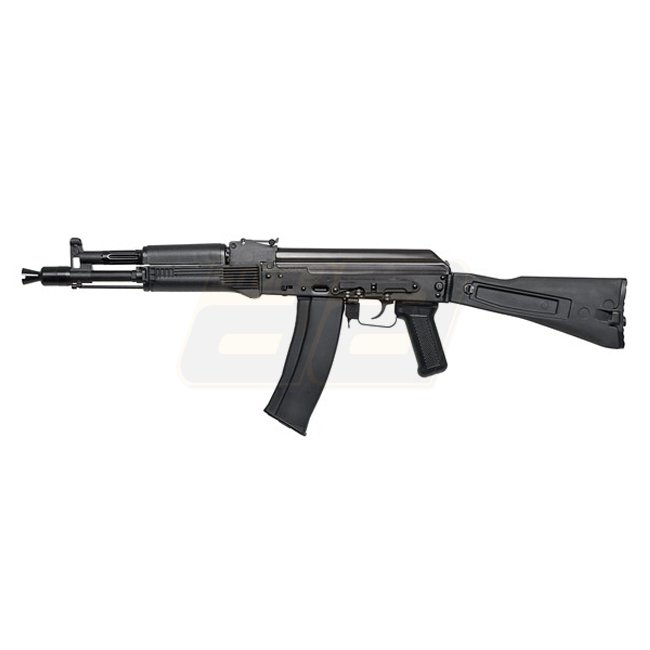 Get ready for intense airsoft battles with the GHK AK105 Gas Blow Back Rifle. Featuring a durable steel construction with plastic stock, handguard, and pistol grip, this rifle offers a magazine capacity of 40 (6mm) rounds. With a length of 592mm (collapse
