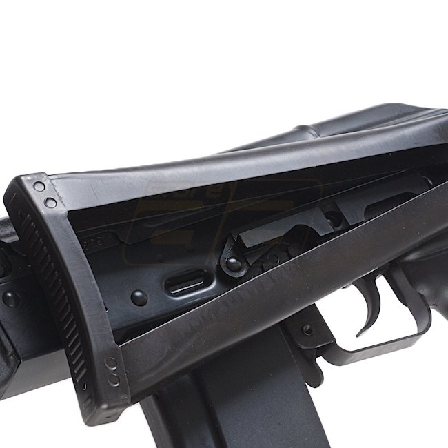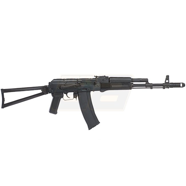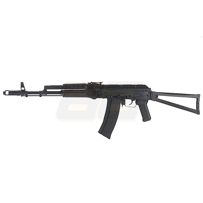 This GHK AKS74M Gas Blow Back Rifle features Metal / Polymer handguard & pistol grip, 50 (6mm) magazine capacity, 950mm length, 3215g weight, 455mm inner barrel length, CCW AK muzzle thread, 360-380 FPS / 1.20-1.34 Joule muzzle velocity, Semi Auto & Full