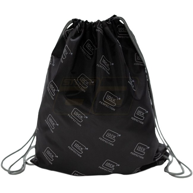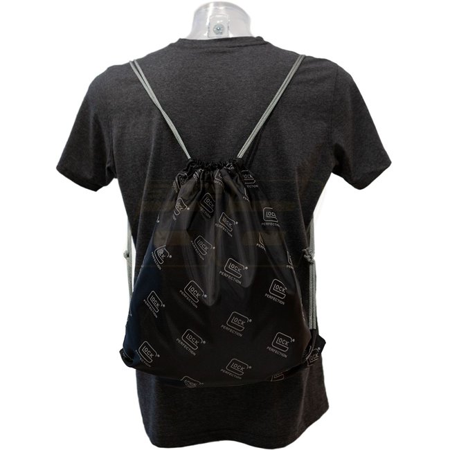 Glock Gym Bag Reflective: 100% polyester gym bag with a reflective Glock logo pattern, featuring dimensions of 42 x 37 cm and a grey loop hanger.