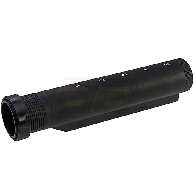 G&P M4 AEG 5 Position Buffer Tube Gen. 2 in sleek black color. Perfect for upgrading your airsoft rifle with adjustable stock options. Durable and stylish addition to your firearm.