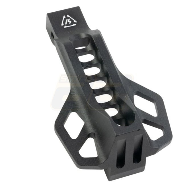 Lightweight CNC-machined aluminum trigger guard in Strike Industries’ “Cobra Billet” design. Designed for use with the Tokyo Marui MWS GBBR system, it improves both ergonomics and handling—especially when wearing gloves. The curved shape provides enhanced trigger access.