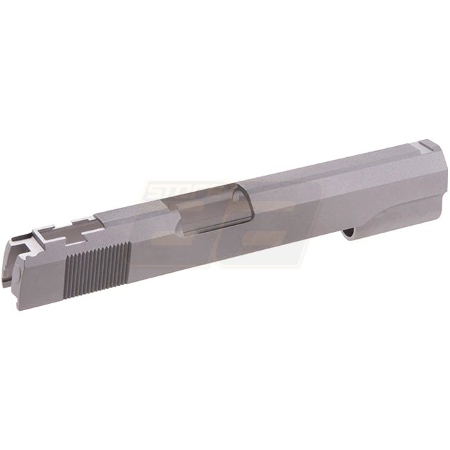 This Guarder Marui Hi-Capa 5.1 GBB Slide is made of high-quality aluminium in a sleek silver finish. It's perfect for enhancing your airsoft pistol's performance and style.