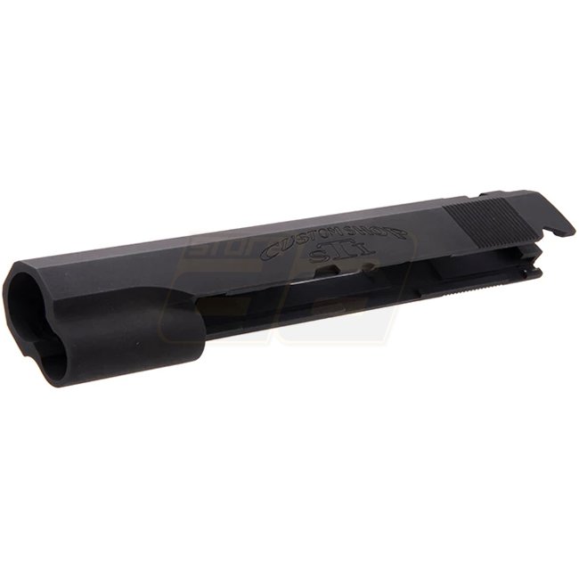 Upgrade your Marui Hi-Capa 5.1 GBB with this sleek black aluminium STI slide from Guarder.