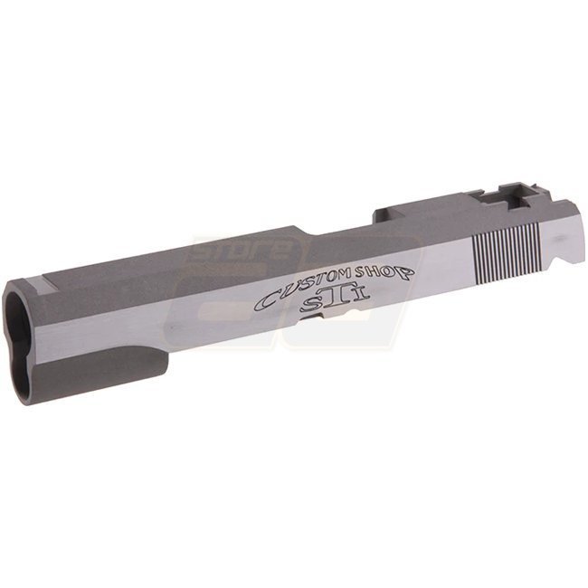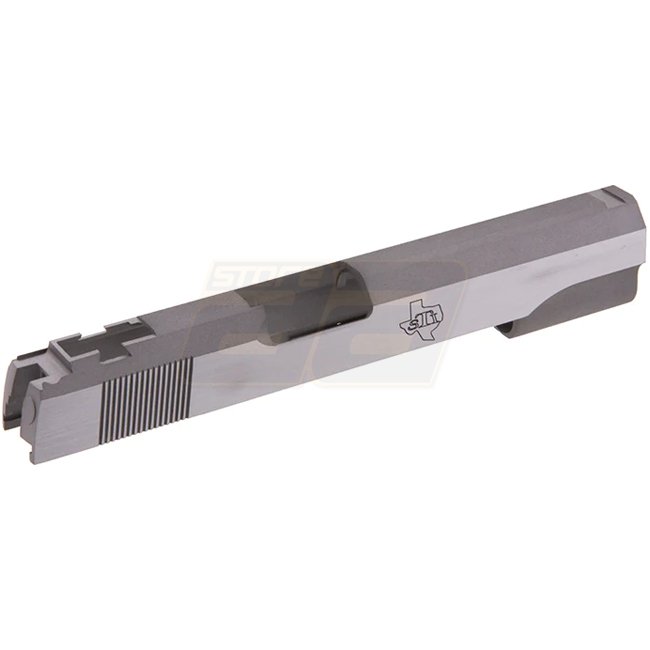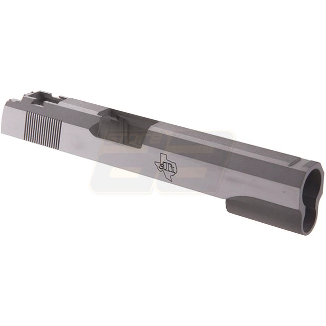 Upgrade your Marui Hi-Capa 5.1 GBB with this durable aluminum STI Cerakote slide in a sleek silver finish.