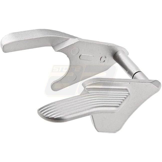 High-quality stainless steel ambi thumb safety for Marui Hi-Capa GBB pistols in Silver finish.